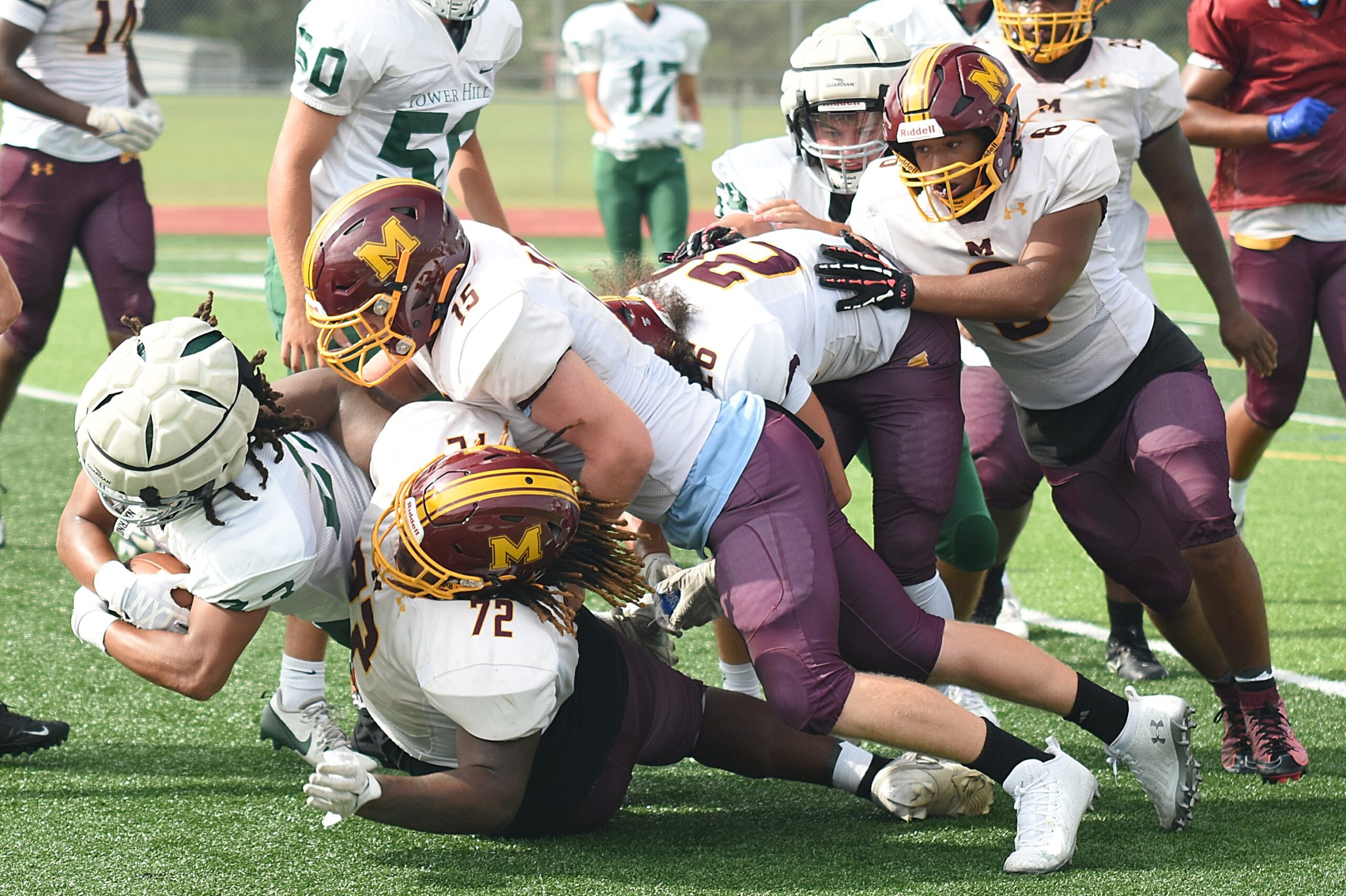 On Wednesday Milford wrapped up pre-season with a scrimmage against Tower Hill. It was spirited with Milford’s high octane running game looking ready to go. In addition, senior Cayden Jarrett who is entering his second season as the starting quarterback looked much more comfortable leading the offense. His reads were solid and his passes were accurate. When asked about Jarrett’s growth, Milstead had this to say “He has a very high ceiling and he keeps on getting better every practice, he has become a leader. The understanding that he has is good and only going to get better, I can’t wait to see how good he is when he reaches his full potential.”