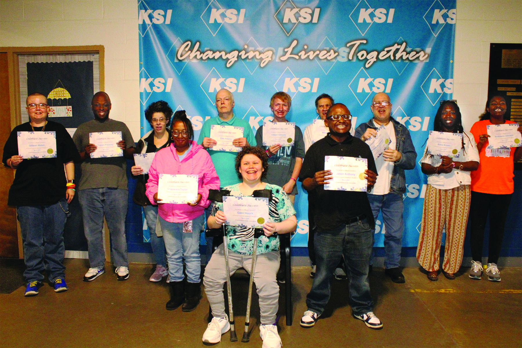 KSI’s Georgetown Southern Campus participants who gained recognition for attendance excellence in March were Fentress Blake, Judith Robinson, George Bull, Alison Comly, David Downing, Shannon Hickman, David Renolds. In back (left to right) were Andrew Orlando, Billy Riddle, Keagan Ammer, Matthew Joseph Wingate, Thurman Mason Leon Ayers, Michelle Gomes and Aniyah Lee.